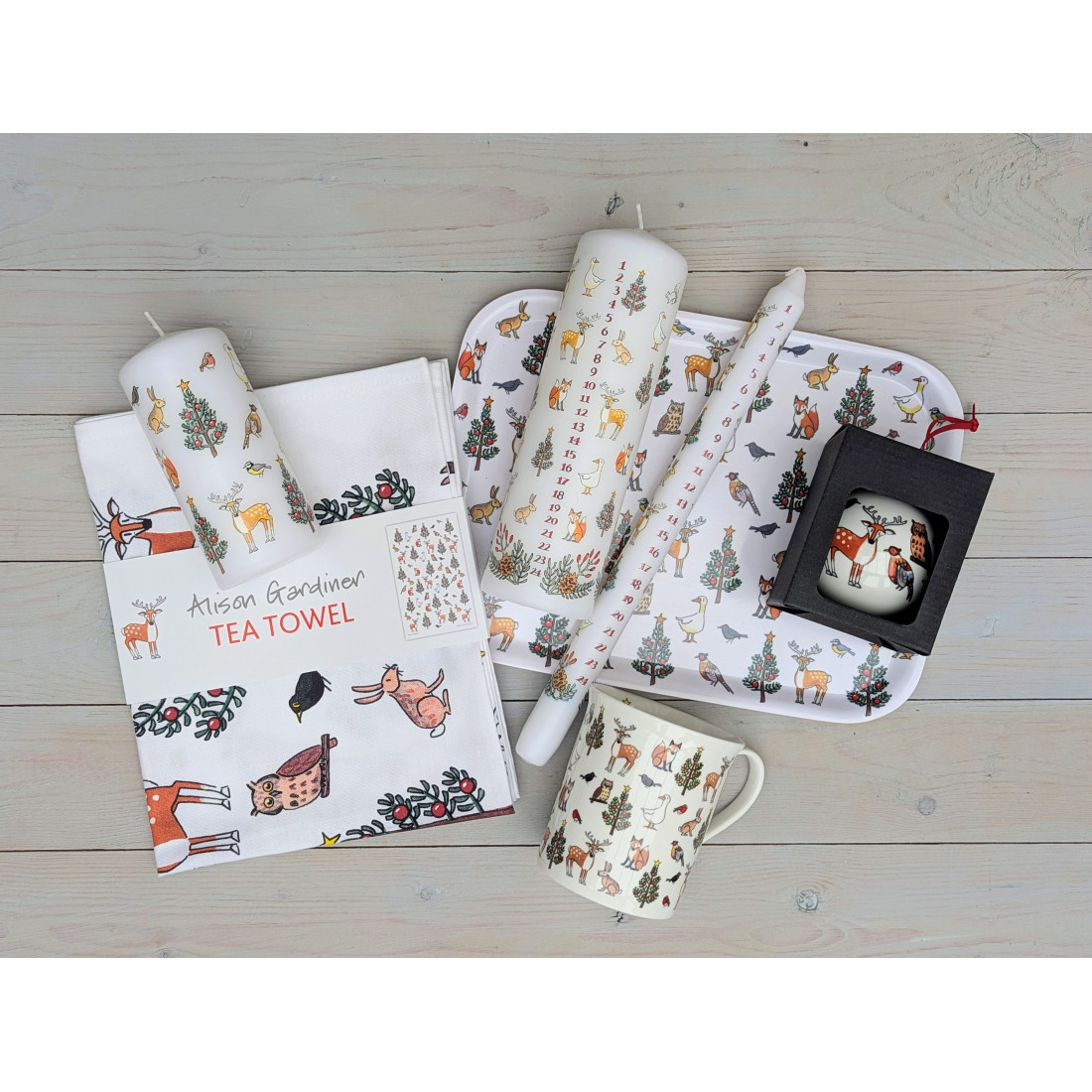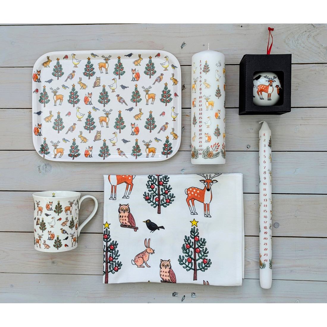 - Celebrate the wildlife of Britain with this beautiful tea towel, featuring red foxes, deer, rabbits and squirrels all surrounded by Christmas Trees.